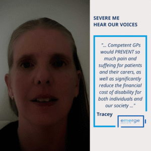 If a knowledgeable GP had been available when I first asked if I might have ME I would probably never have deteriorated to the severe level. So it is critical that our GPs are educated in the diagnosis and treatment of ME, and especially to be aware of the harm that graded exercise therapy can cause in this disease. Competent GPs would PREVENT so much pain and suffering for patients and their carers, as well as significantly reduce the financial cost of disability for both individuals and our society.